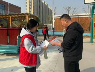 (志愿者们向居民发放传单)