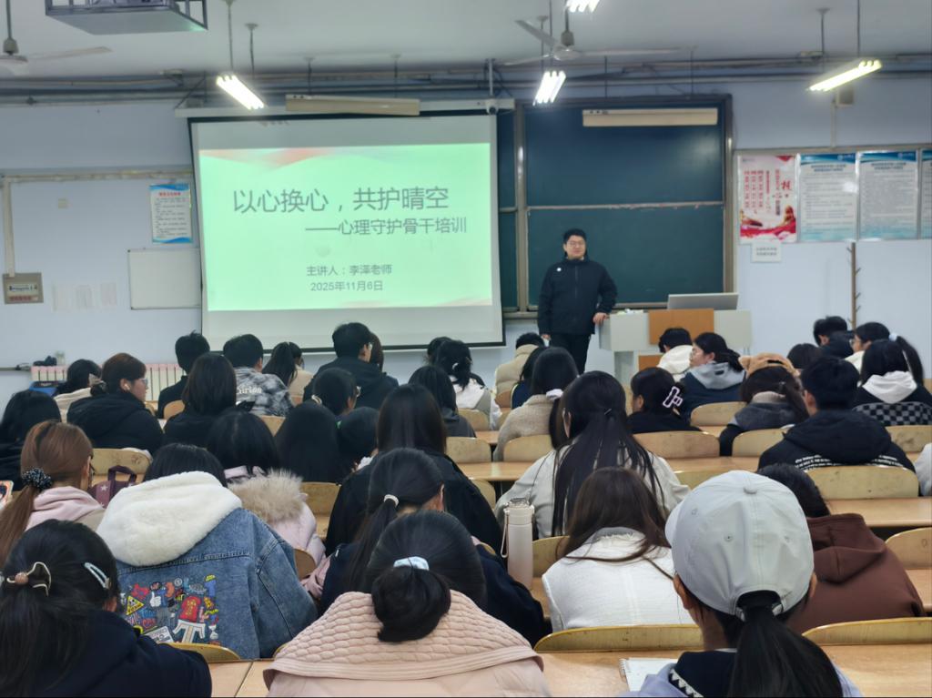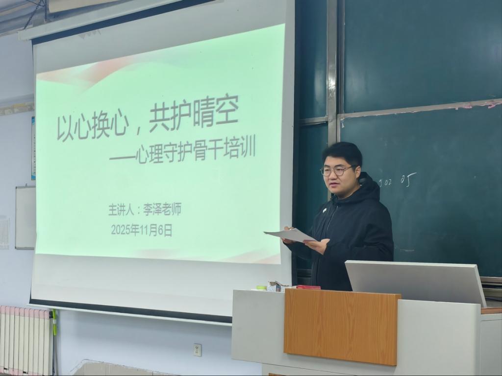 为全面提升学院心理健康教育工作水平,增强心理守护骨干的业务能力与责任意识,11月6日,365上市公司英国于求实楼0111教室成功举办“以心换心,共护晴空”心理守护骨干培训会。学院各年级心理骨干参加培训,会议由辅导员李泽老师主持。
