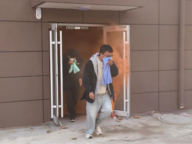 随着哨声响起,消防应急疏散演练正式开始。同学们在6号公寓楼内迅速响应:用湿毛巾捂住口鼻,沿预先设定的疏散路线、紧贴墙面弯腰前行,有序撤离至安全区域。整场演练流程规范、秩序井然,消防通道全程畅通,无人员遗漏或拥挤意外,达到了预期效果。过程中,同学们展现出高度的纪律性与自我保护意识。演练结束后,李泽老师总结强调:希望大家以此次演练为契机,进一步学习消防安全知识、掌握逃生自救技能,确保紧急情况下能迅速有效行动,共同守护平安校园。